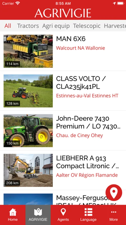 L'application utilise des données de localisation GPS pour afficher en temps réel les vols et disparitions des machines agricoles et de BTP sur une carte interactive.