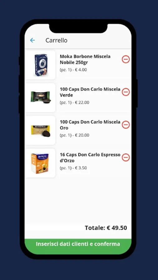 Con la nostra app potrai acquistare la miscela di caffè che preferisci comodamente dal tuo smartphone sfogliando il catalogo.