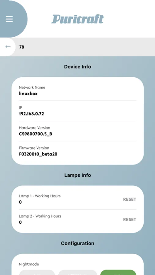 With the Puricraft app you can manage and program your Puricraft UVC PRO sanitizer directly from your smartphone or tablet. Just connect your sanitizer directly to the wi-fi. Once connected, you can configure all your devices, manage their operation by programming the sanitation cycles and monitor the efficiency of the UVC lamps. Through the "history" you can always check that the sanitization programs have been performed at 100% and monitor any anomalies or problems.