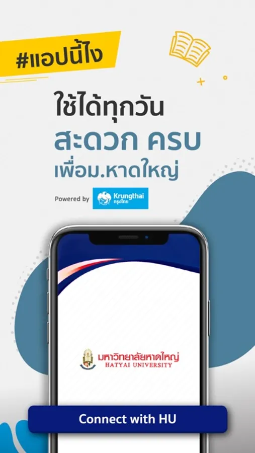 ธนาคารกรุงไทยร่วมกับมหาวิทยาลัยหาดใหญ่ พัฒนา Hatyai UApp ให้เป็น One Stop Service ที่ตอบโจทย์ทุก Lifestyle ในรั้วมหาวิทยาลัย สำหรับนักศึกษา อาจารย์ เจ้าหน้าที่ รวมถึงศิษย์เก่า ไม่พลาดทุกข่าวสารและกิจกรรมที่สำคัญของมหาวิทยาลัย