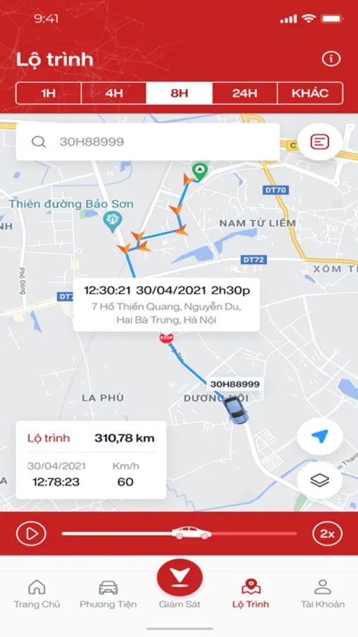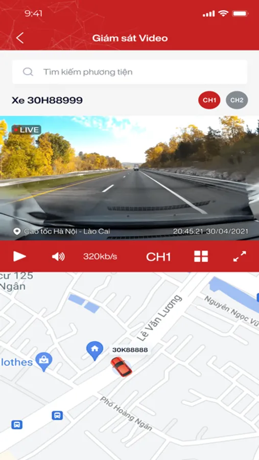 - Ứng dụng có tính năng xem lại lộ trình di chuyển, hình ảnh camera, livestream.
