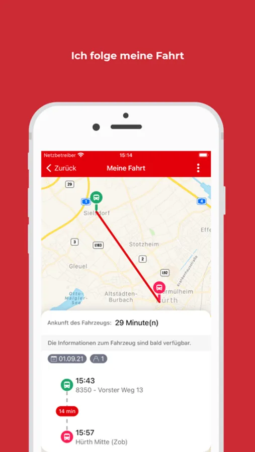 Ihre Abfahrtzeit und -haltepunkt, das Kennzeichen des Fahrzeugs, der Name des Fahrers sowie die Ankunftszeit und etwaige Mitfahrer werden Ihnen umgehend mitgeteilt