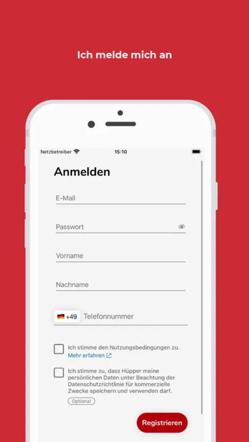 2.) Registrieren Sie sich einmalig für Ihre erste Fahrt direkt in der APP oder auf der Homepage