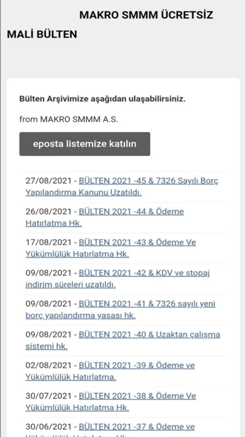 Mali mevzuat ile ilgili bilgilendirmeler vergi takvimi hatırlatmaları vergi kanunları ile ilgili değişiklikleri bildiren , vergilerin ve primlerin kamu ödemelerinin son ödeme tarihini bildiren bir uygulamadır.