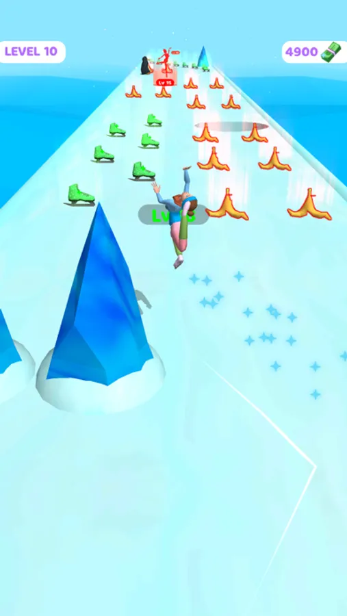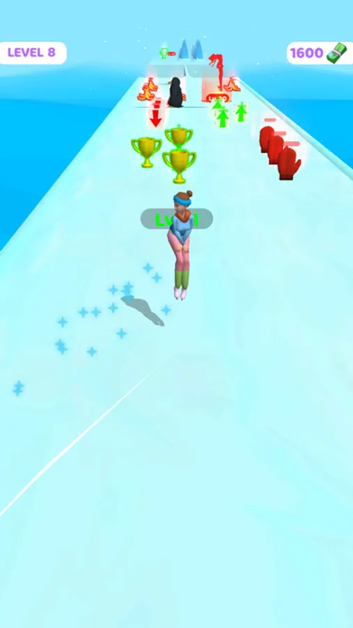 Let's ice-skate! Do not forget to TAP or you will fall to ice! Collect positive collectibles and avoid the others! Espacially, the PENGUINS, they are the worst! To achieve highest score you must be careful! Look out for the ice blocks!
