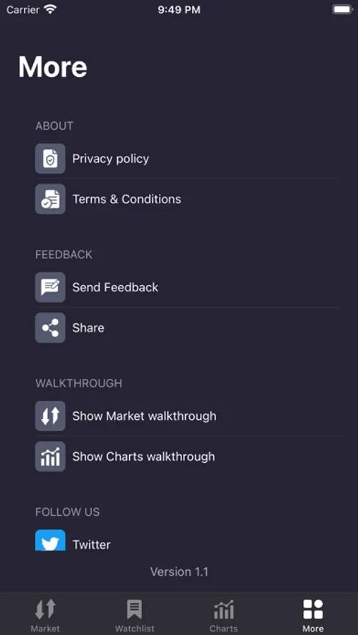 Tap any item in the watchlist to jump to a powerful and feature-rich trading chart.