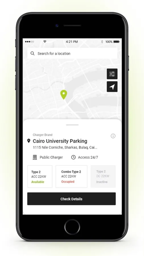 Access the charge stations in Egypt and the plug types supported for each station and the availability.