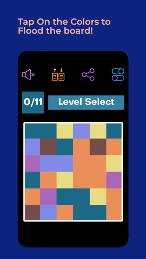 Simply tap on the colors to flood the board, but be careful, don't go too fast or else you will press the wrong one and have to start all over!