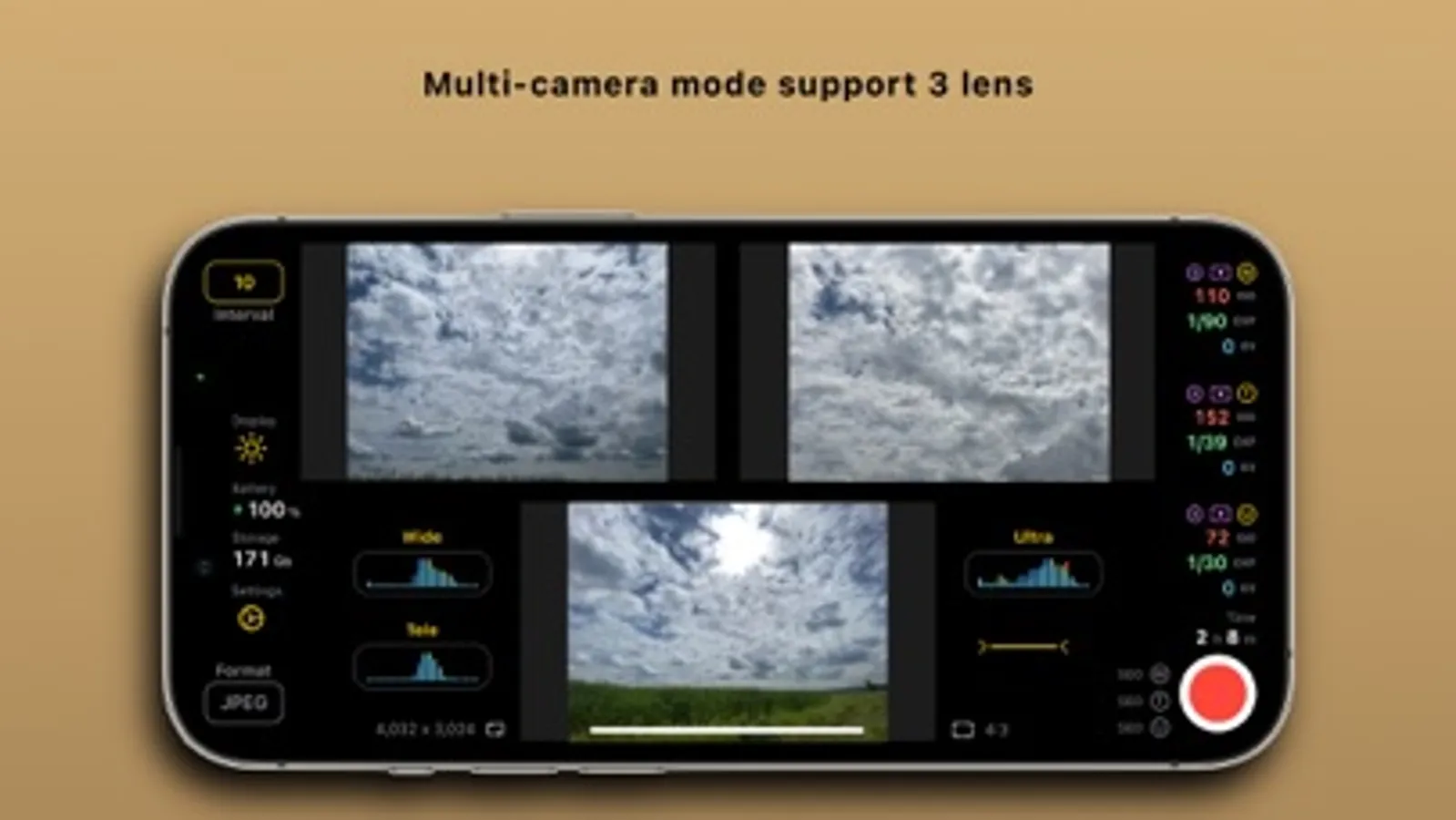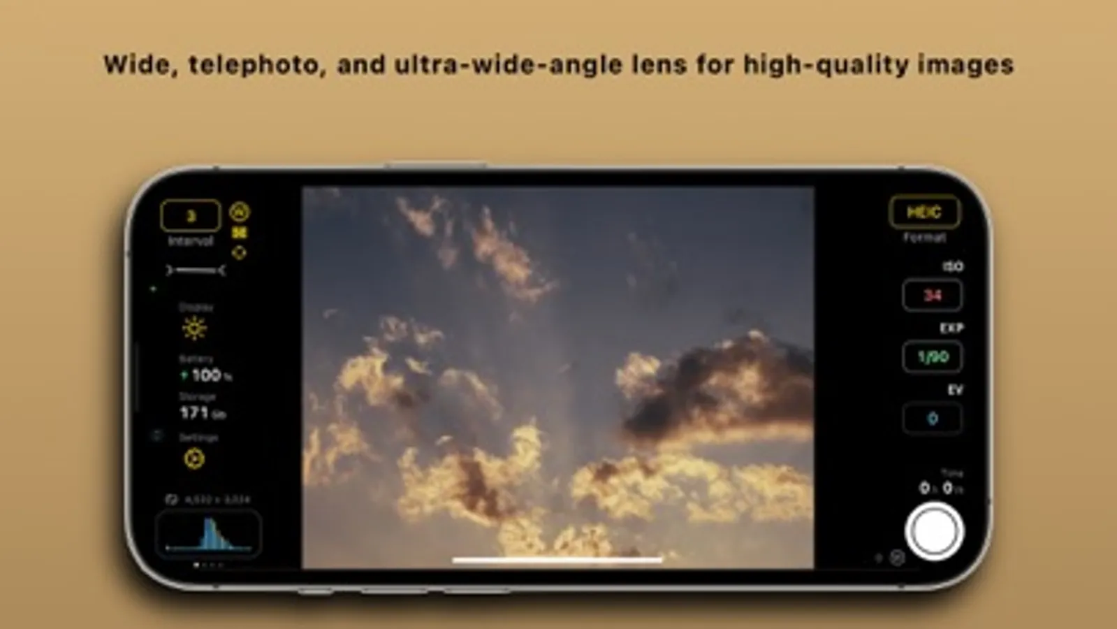 Time lapse shooting helps to see the beautiful movement of clouds or other objects, usually time lapse cameras save the finished video, Timelapse - Life captures each frame with a fixed exposure and focus, saves it to the photo library or files. And after you can apply processing to each frame in the photo or video editors to save a stunning video with the best quality.