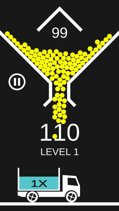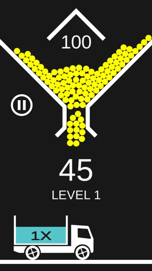 Tap the screen to release the balls, you need to do that in a perfect timing so balls fall into trucks. Each ball you get into the truck rewards you with a different amount of points, depending on the truck score multiplier. If the ball misses the truck, it disappears. When you lose all 100 of your balls, the game is over. The game is endless and your only goal is to reach as many score points as you can.
