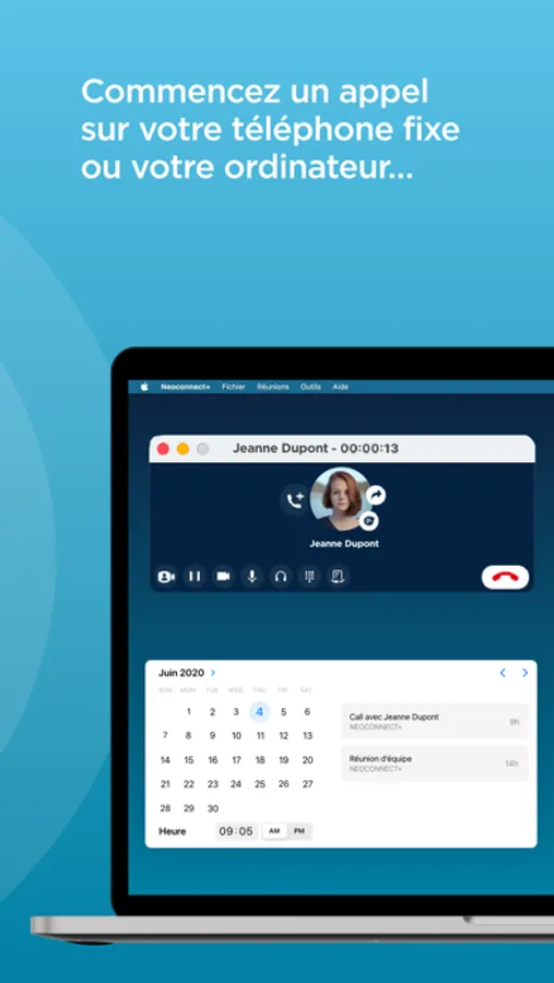 Neoconnect+ prend en charge les appels vocaux (internes et externes), la visioconférence et la messagerie instantanée. Dans toutes vos configurations, vous pouvez également échanger rapidement des documents, travailler ensemble à leur élaboration et planifier les prochaines étapes.