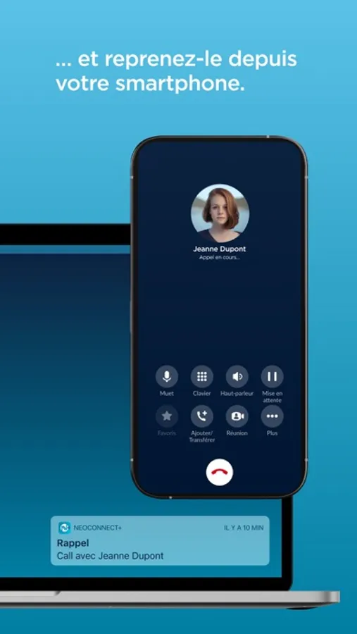 Grace à la fonction « call control », recevez et passez des appels depuis n’importe lequel de vos devices comme si vous étiez sur votre poste fixe.