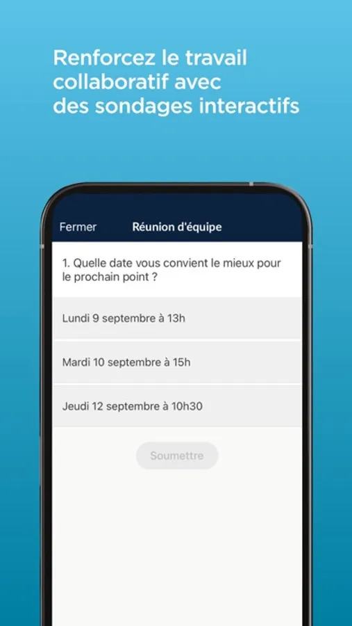 Animez vos réunions, donnez la parole à vos collaborateurs, mettez en place des sondages et obtenez un retour instantané de la part de vos collègues ou de vos clients.