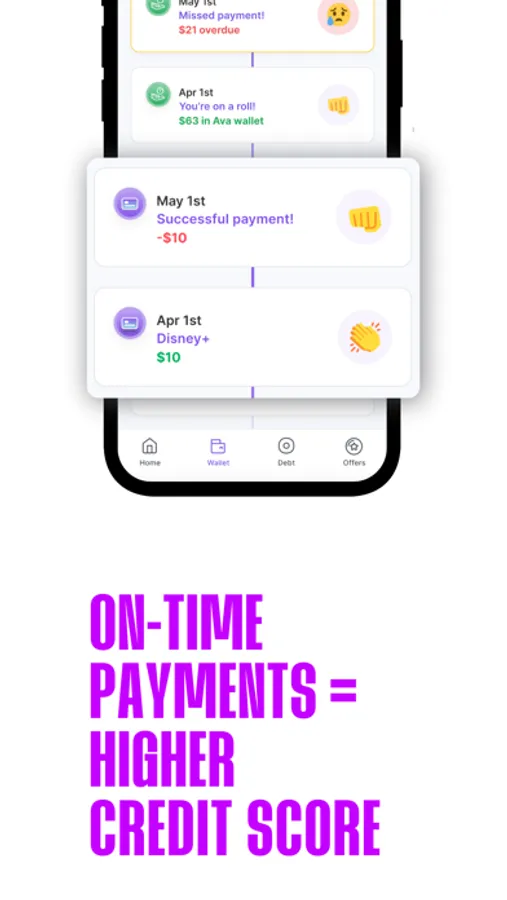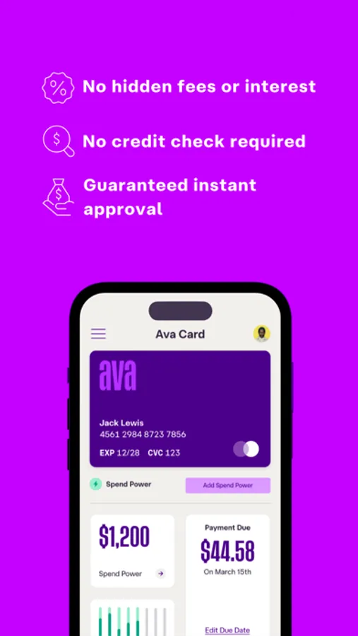 Ava makes credit building easy. What you see is what you get – no hidden fees, zero interest, and a promise that we've got your back. We make sure we win only when you win. A better credit score and thousands in savings are just a few taps away.