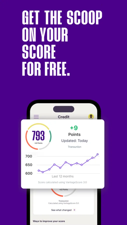 Stay on top of your credit score with free credit reports in the app and watch as your score improves. Discover insights and suggestions in your report that make it easy to understand credit factors, like credit utilization and percentage of on-time payments.