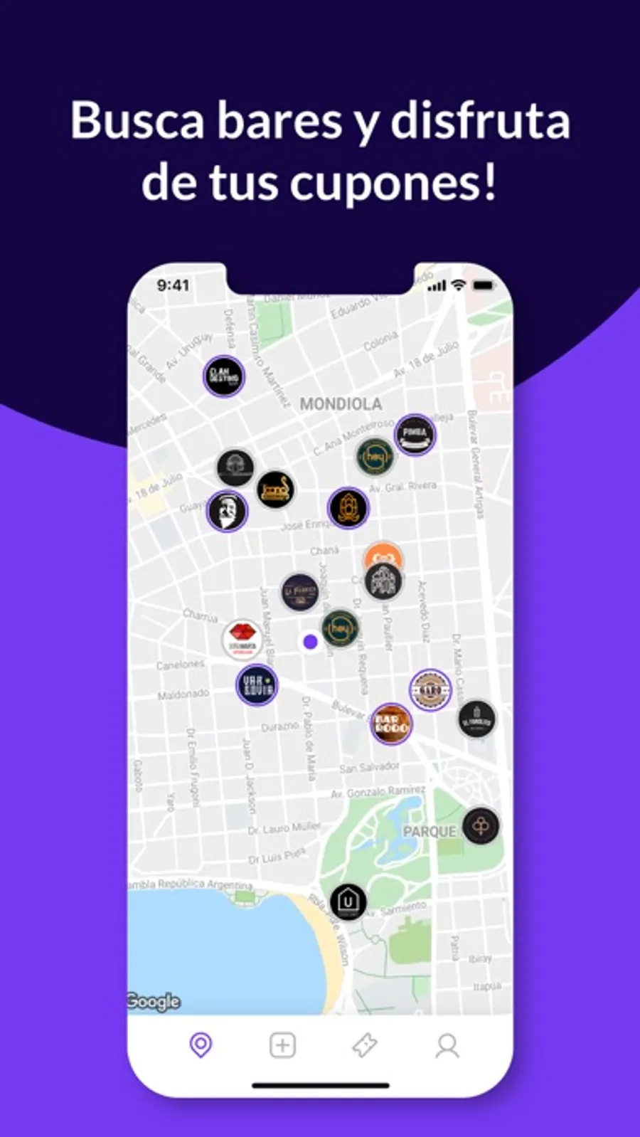A través de un mapa y mediante el uso de la geolocalización, Bar´s le permite al usuario identificar todos los locales gastronómicos a su alrededor.