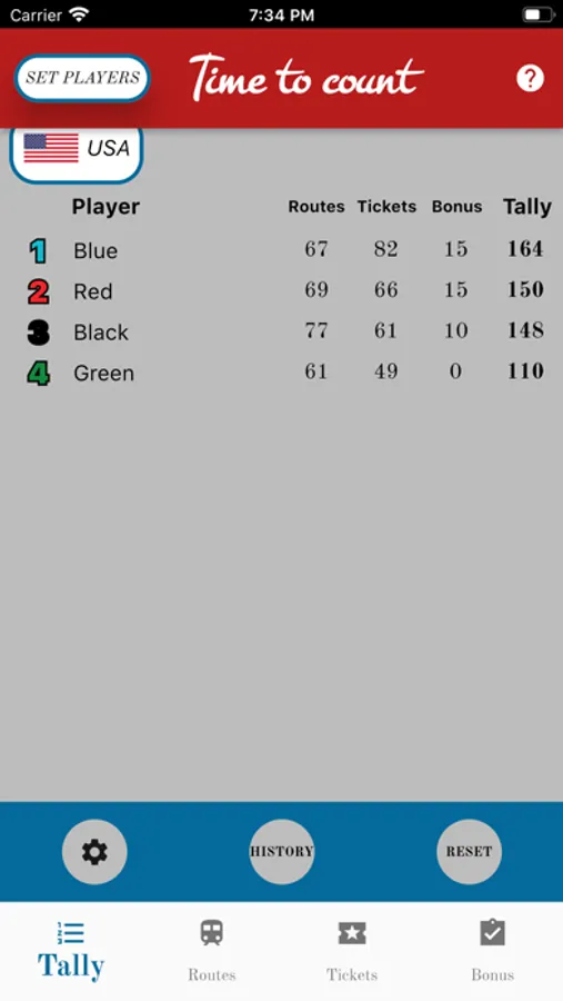 Use Time to Count to quickly calculate scores for the Ticket to Ride board game. It is intended to be used as the game finishes and all points are counted.