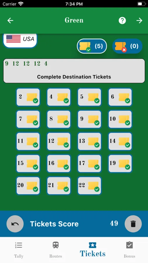 Count destination tickets with a simple click. You can add the complete tickets and incomplete tickets. You also have an undo button for editing. The app shows only the destination tickets for the selected game board.