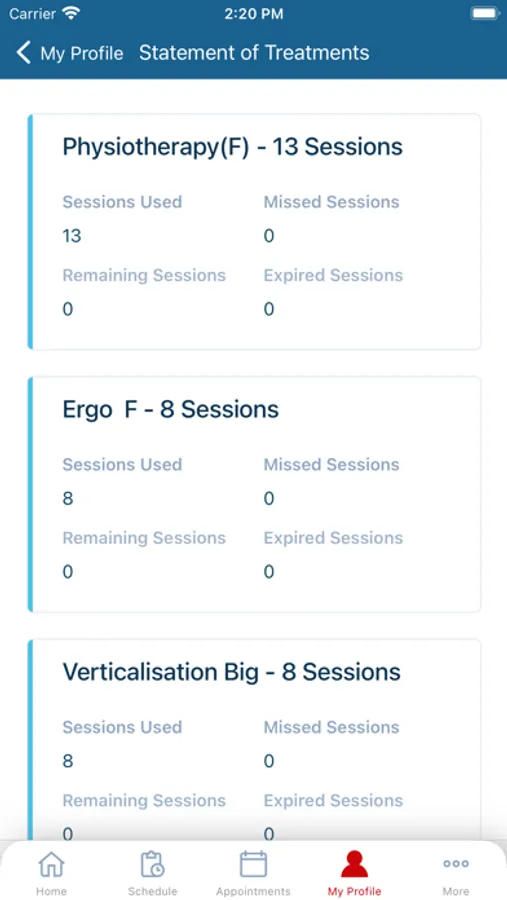 • Track your treatment sessions