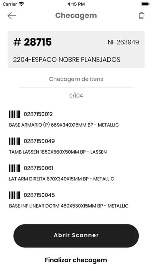 Com este app, será possível conferir os volumes entregues pela transportadora através no número da nota fiscal.