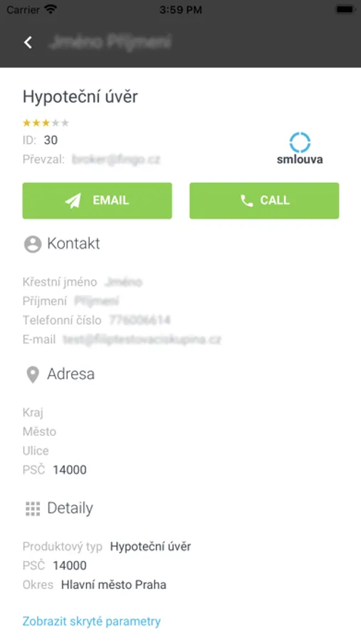 - přes tlačítko "call" zavoláte klientovi bez přepisování telefonního čísla