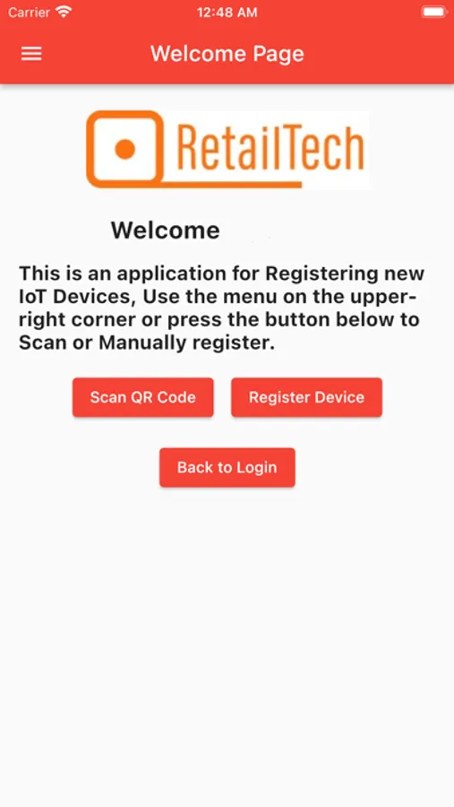 User can register his devices to Retailtech backend with this application. User needs to have credentials,