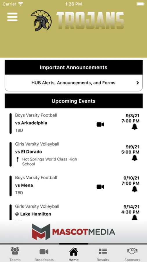 Content is managed by the Hot Springs Trojans Athletics Department with help of high school students gaining valuable access to emerging and mobile technologies.