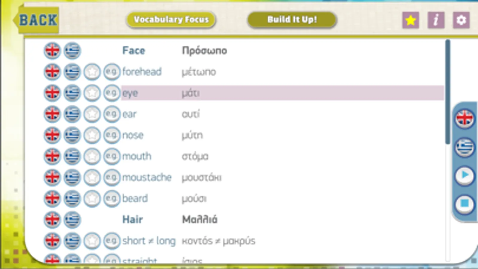 - Vocabulary με προφορά, μετάφραση και παραδείγματα