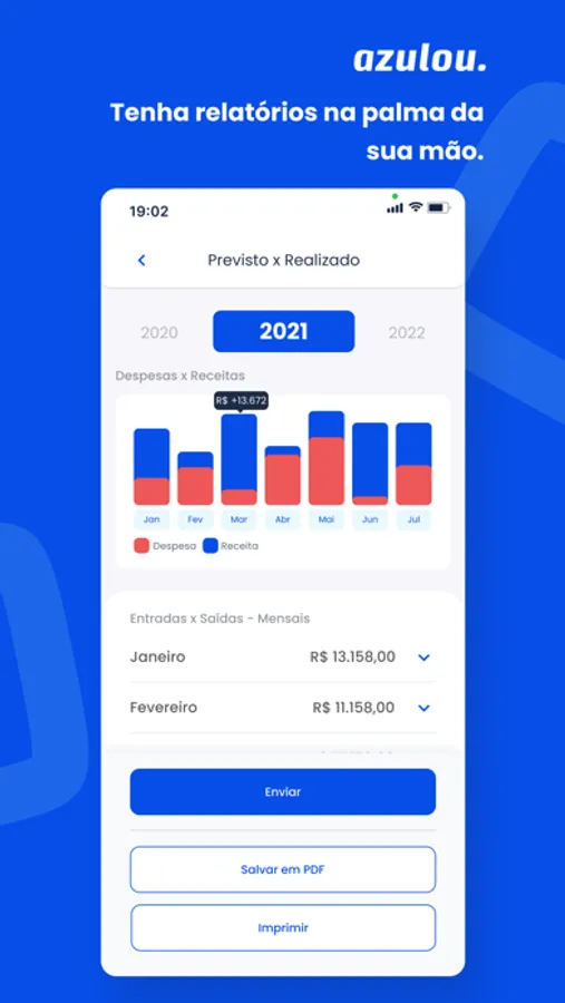 - Relatórios financeiros como DRE, Previsto x Realizado, Fluxo de caixa e outros.
