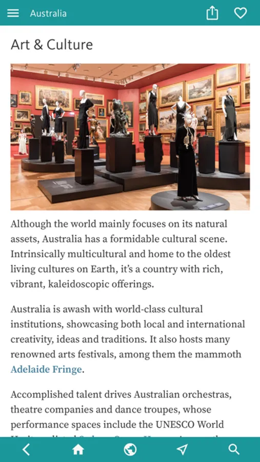 There’s much more on these two topics in INTERESTS & ACTIVITIES, the next section of the app. It’s designed to give you the heads-up on various interests, so if you’re travelling with KIDS or looking for ART & CULTURE then you might just dive straight into the app here.