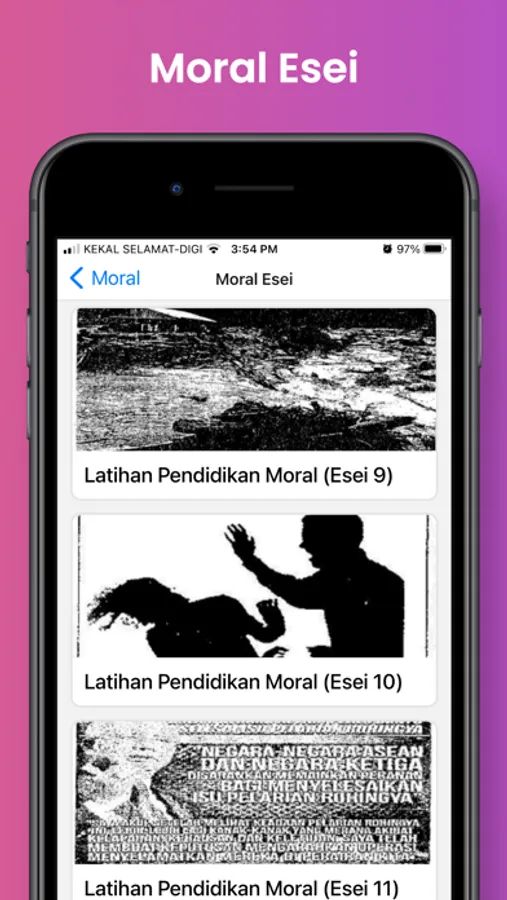 In each essay, good phrases (idioms, quotes, peribahasa, kata hikmat) and glossaries are highlighted.