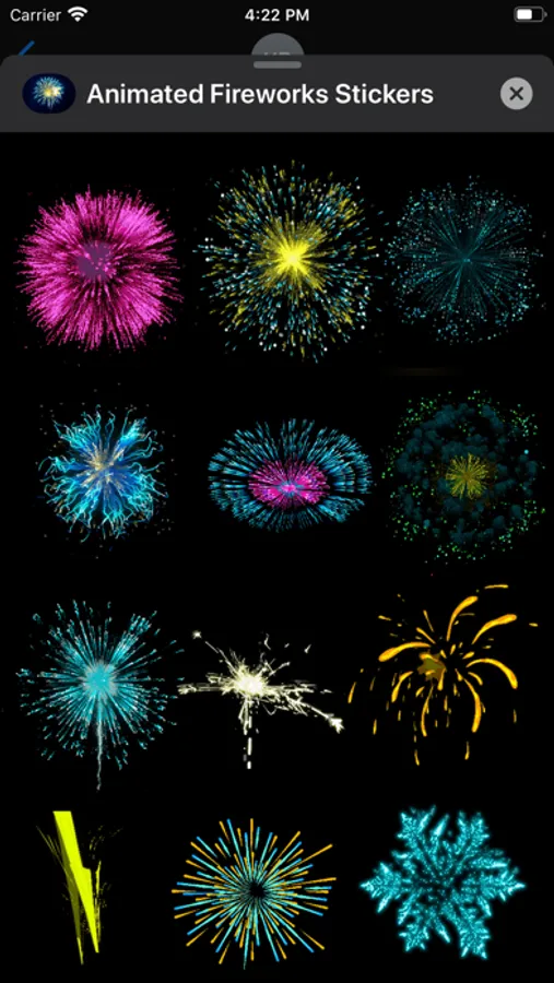 There is a wide variety of Animated Fireworks can choose from this app. Peel and stick them over other conversation bubbles, images, photos, even on other stickers.