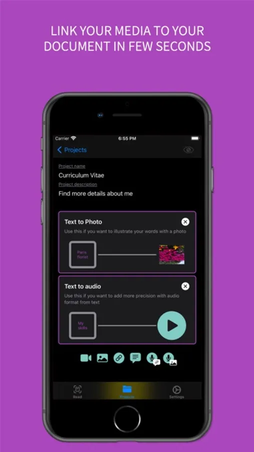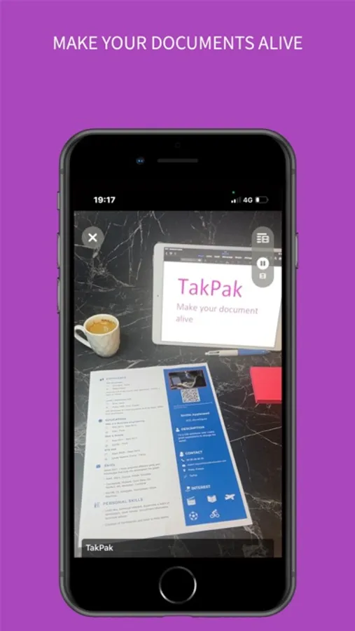 Create a project where some elements of your document become alive. Convert your text documents into audio, video formats easily with an awesome AR. TakPak helps you to grow your product and business with few steps, easily and quickly.