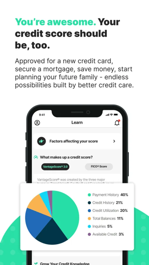 Get approved for a new credit card, secure a mortgage, save money, start planning your future family - endless possibilities with better credit. Enroll in minutes online (no call center agents!) and get a head-turning credit score with credit monitoring, alerts, scores, tips and tricks – for free.