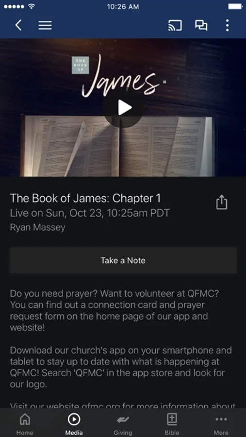 - Watch or listen to past sermons