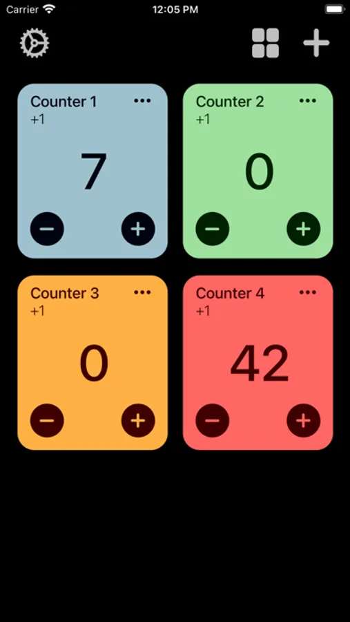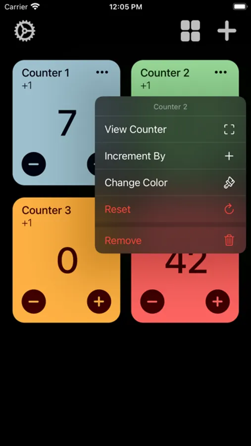 Grid view let's you access all your counters from one view. Edit or remove a counter from grid view by tapping the "..." button.