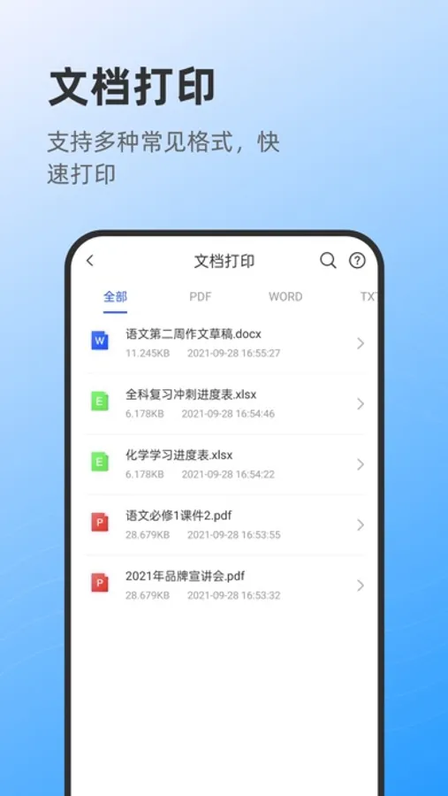 【文档打印】支持WORD、PDF、EXCEL、TXT文件的管理与打印;