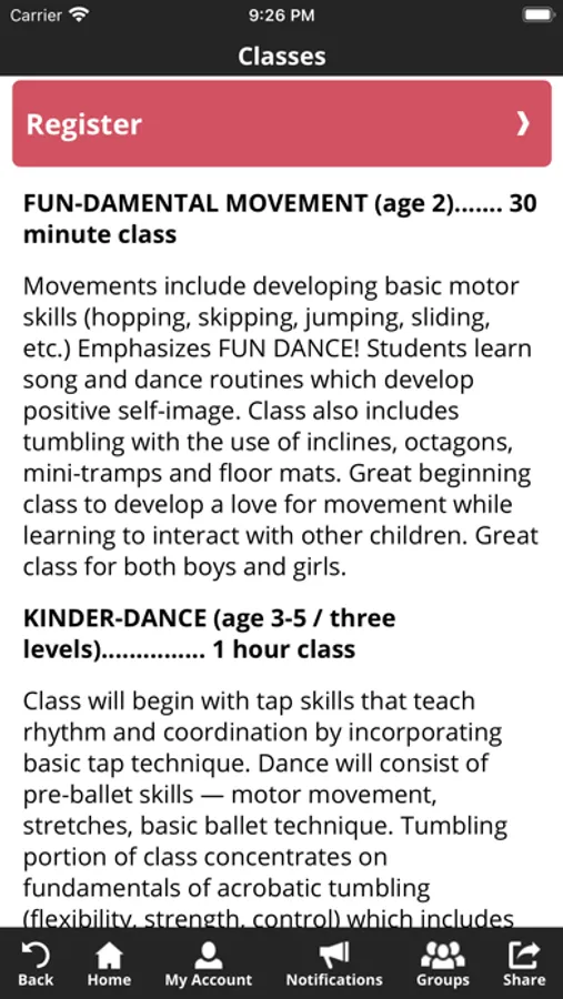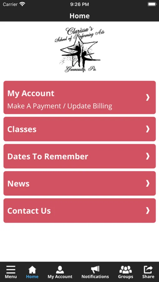 The Clarissa's School of Performing Arts app allows you to manage your account with ease, register for classes, parties and special events. You'll also receive important notification about class changes, closings, registration openings, special announcements, and upcoming events.