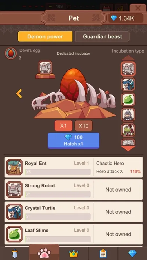 * Defeat the demons, hatch demons eggs, and nurture the young demons to work for you