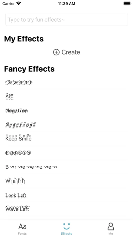 • Create Effects: desgin effects only belong to yourself! Can be used with fonts in keyboard.