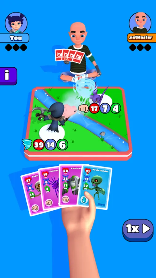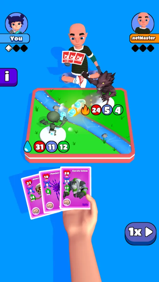 Every round, open a new card pack and receive new monster cards! Square off against rivals! Every monster has an element. Choose your champion, but beware! Some elements are more effective against others!