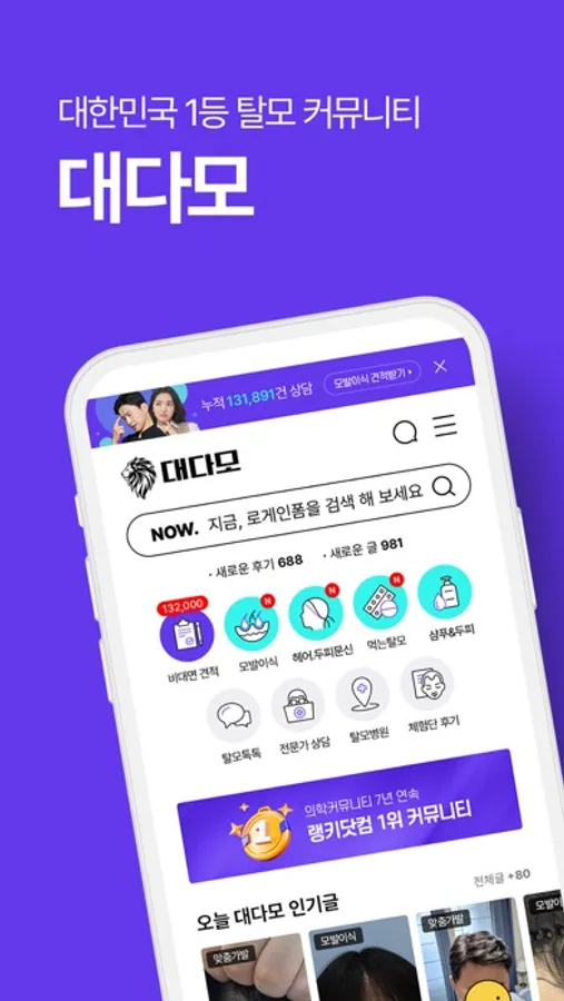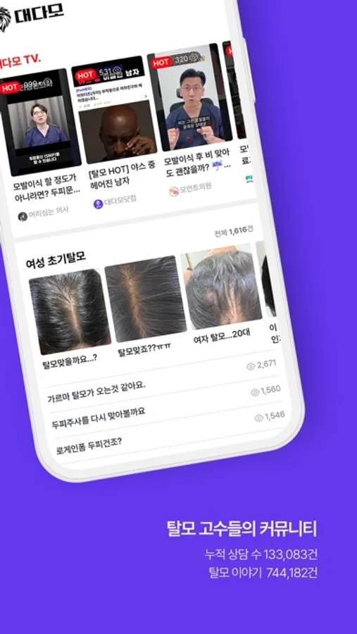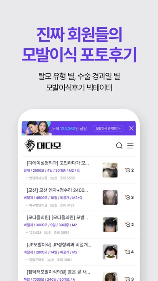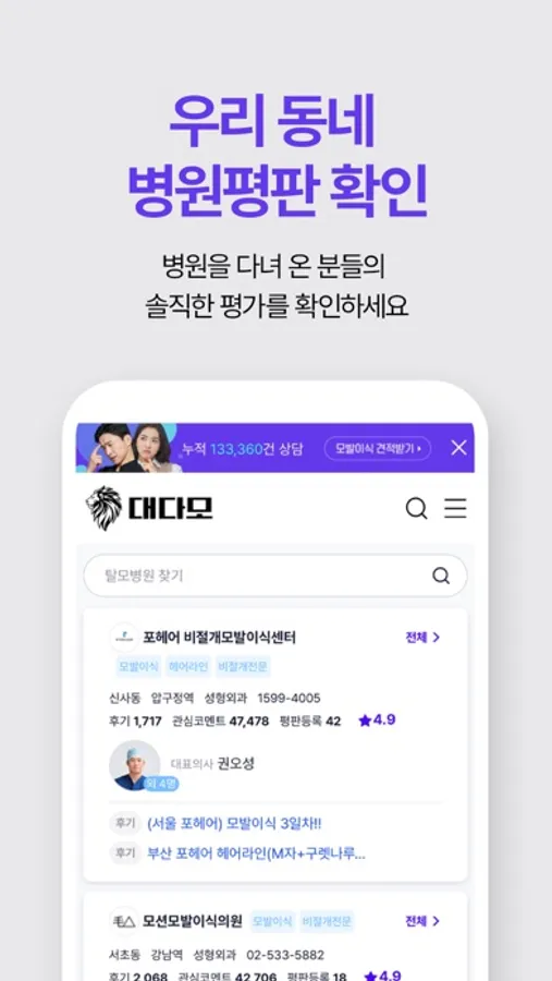 대한민국의 탈모 관련 병원 정보를 공유 받을 수 있습니다.