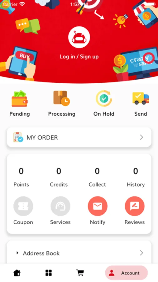The CrazySales Shopping app allows you to shop all products and manage your orders from anywhere at any time, as long as you have a mobile phone with IOS system and connection to the Internet. You can browse items casually, search products through the search box or by categories and departments, read reviews, and track your orders.