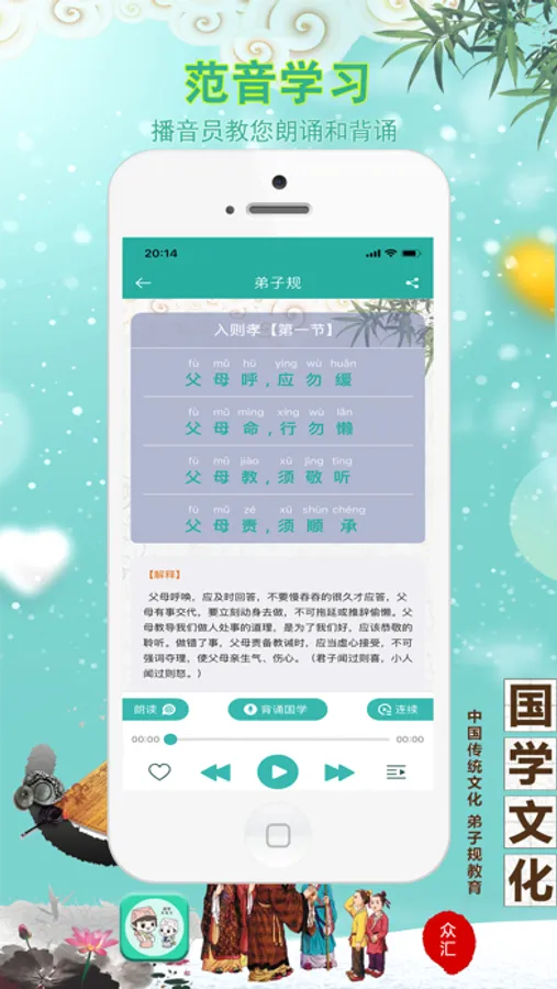 4、【软件功能】国学,诗词,古诗,文言文对照朗诵、逐句跟读、背诵。