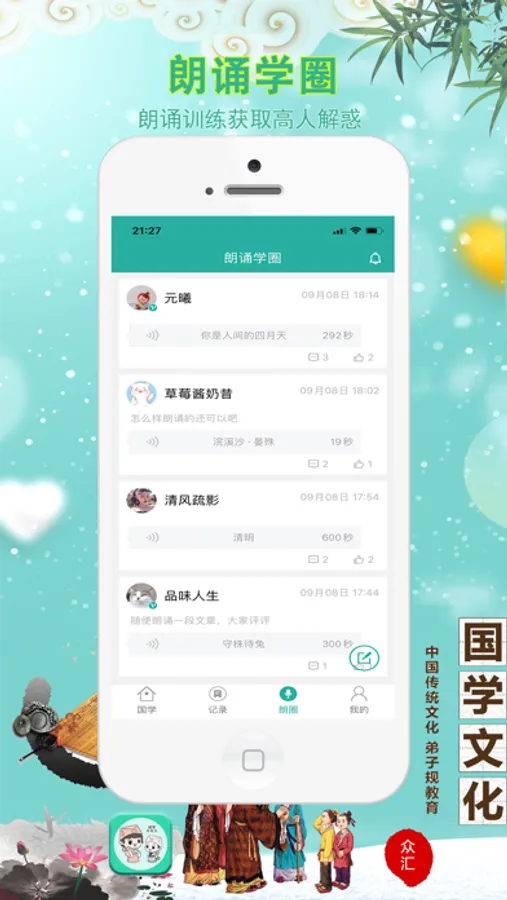 6、【软件学圈】在学圈发布自己朗读作品,便于别人指导提高自己朗读水平,也可供别人参考学习。