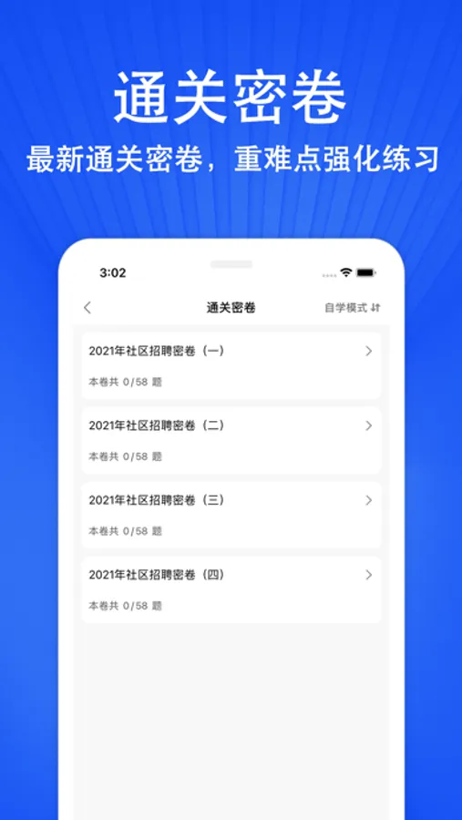 社区工作者考试题库2021为社区工作者公开招聘考试的软件,精心准备最新的试题,量身为社区考试量身打造,对社区考试真题预测的准确度,最大限度的把握社区考试命题趋势。为考试的提供了充分的复习准备,可随时随地学习练习,有效帮助顺利通过考试,学习知识通过考试必备神器!