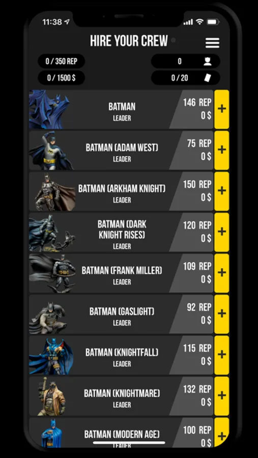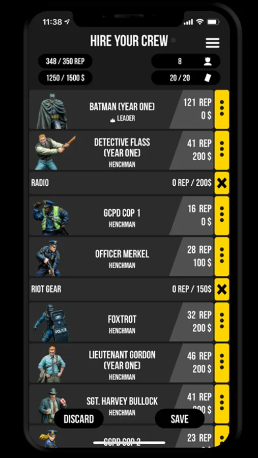 Choose your favorite characters, your leaders, sidekicks, free agents, henchmen, and vehicles. Their reputation will be added up. Buy them weapons and equipment. The dollars will be automatically subtracted from your crew’s funding stash.