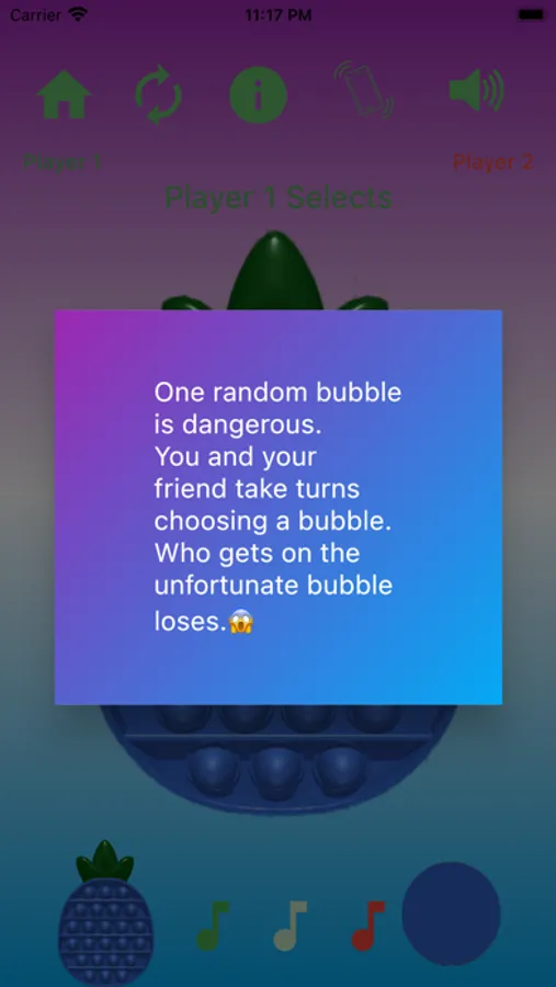 One random bubble is dangerous. You and your friend take turns choosing a bubble. Who gets on the unfortunate bubble loses. Good luck!!!