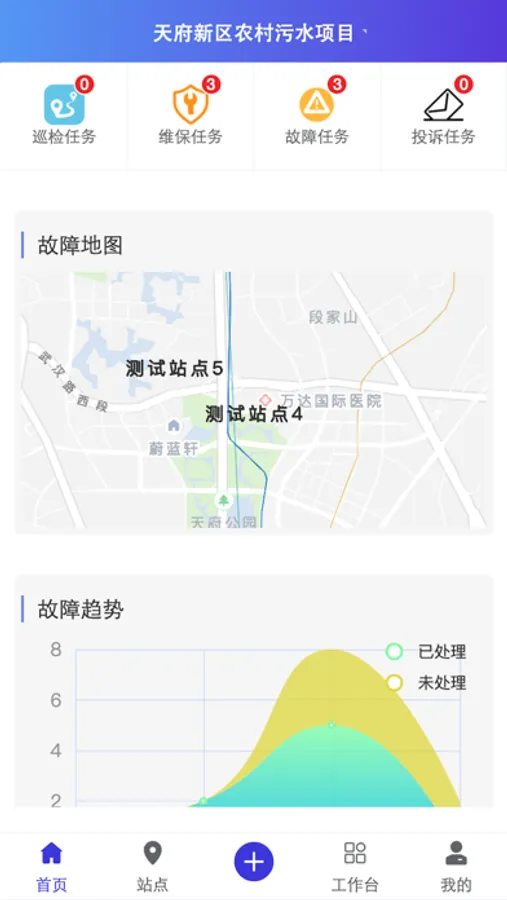 污水监管一体化平台,提供站点、设备状态查看、物联网数据统计可视化分析、巡检维保记录保存等功能。