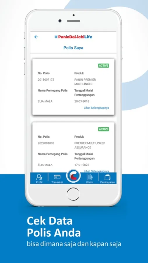 • Temukan informasi manfaat perlindungan Anda dan berbagai informasi polis.